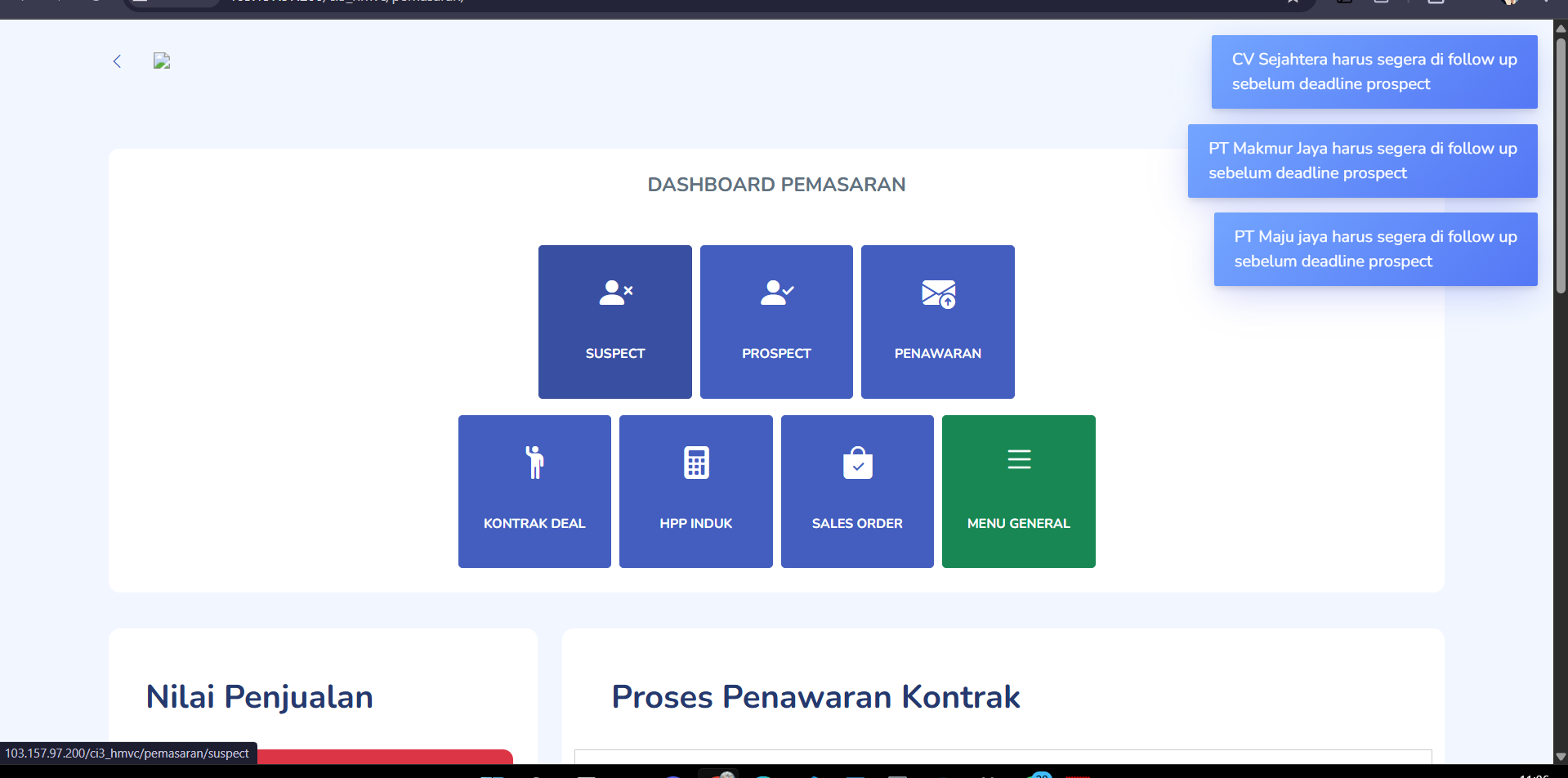 Aplikasi CRM untuk mengelola data pelanggan, interaksi, dan laporan performa tim sales.