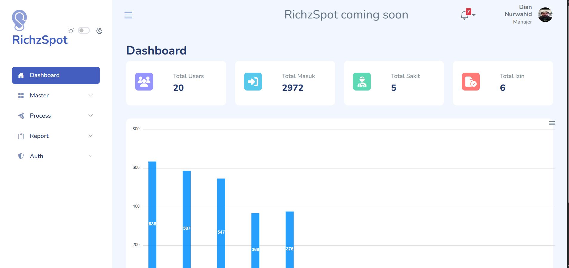 Aplikasi absensi berbasis web dengan fitur voucher, tracking realtime, dan laporan otomatis.